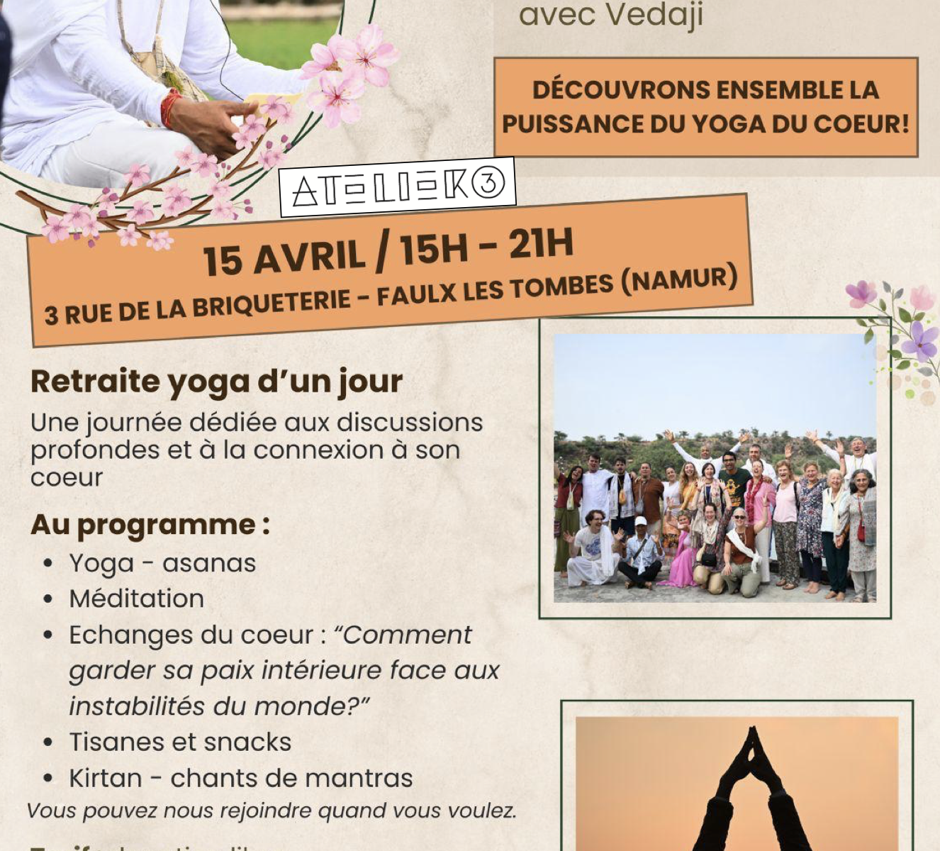 Cette année, nous aurons le plaisir d’accueillir Vedasara en Belgique du 9 au 15 avril pour organiser cette année un BHAKTI TOUR à travers plusieurs lieux en Belgique. Il sera à l’Atelier3 ce 15 avril 2026 pour guider un temps de retraite.